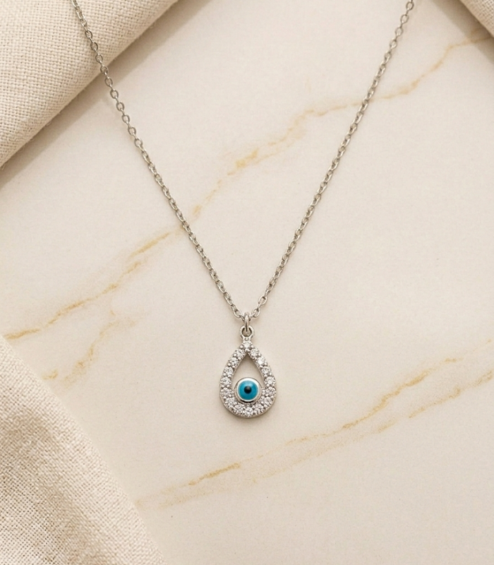 Fio em Aço Prateado, C/ Gota ccom Brilhantes e Olho Turco